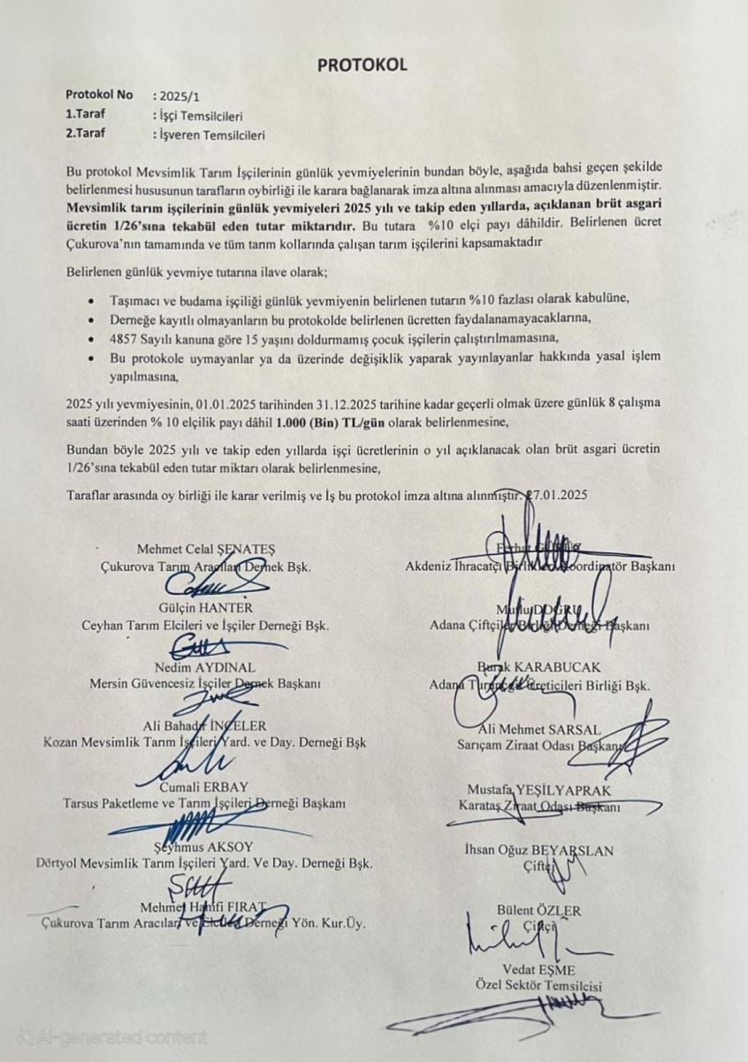 MEVSİMLİK TARIM İŞÇİLERİ ÜCRET BELİRLEME PROTOKOLÜ